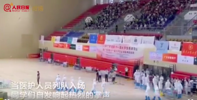 当医护人员们列队入场时