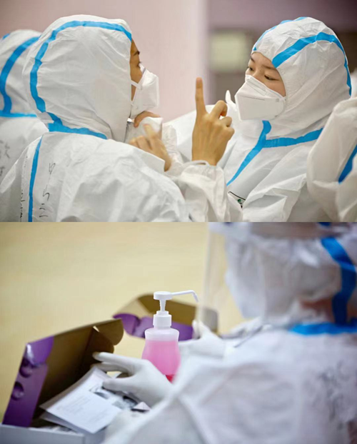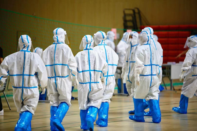 医护人员,志愿者,等待检测的同学
