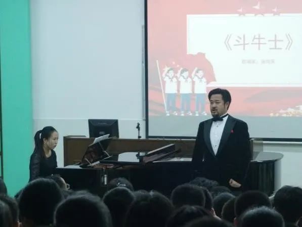 张海庆老师为孩子们带来了歌曲《斗牛士》,雄壮激昂的曲调,铿锵有力的旋律,浑厚有力的嗓音,恰如其分地演绎出“斗牛士”英勇无畏的形象。