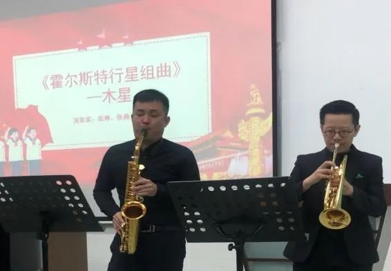 柴琳、张鼎、陈欣三位老师共同演奏的曲目《霍尔斯特行星组曲——木星》, 由中音萨克斯、富鲁格号与钢琴三重联奏,此起彼伏的乐声带领孩子们遨游太空,探索神秘的宇宙世界。