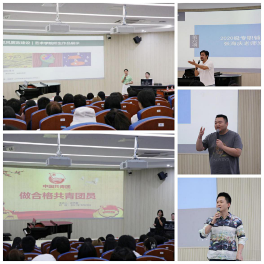 为深入学习贯彻习近平总书记全面从严治党、作风建设、纪律建设系列重要讲话精神,落实学校人才培养目标,引导学生“学在中大,追求卓越”,强化学生法治意识、纪律意识、规则意识和安全意识,2021年9月29日下午,艺术学院学生工作团队教师与全体学生齐聚一堂,召开了纪律教育与安全教育培训会议。会议上,师生代表围绕着“纪律与安全”的内容做出精彩的发言。