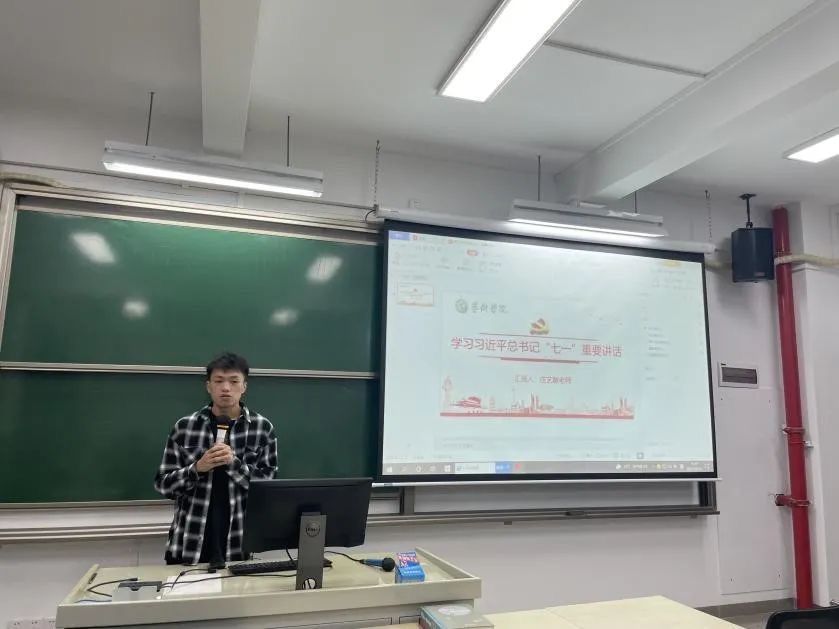 在庄艺敏老师的带领下,同学们首先学习了习近平总书记“七一”重要讲话。庄老师强调,习近平总书记“七一”重要讲话是习近平新时代中国特色社会主义思想的最新篇章,是指引我们全面建设社会主义现代化国家、实现中华民族伟大复兴中国梦的行动纲领,具有重大的政治意义、理论意义、实践意义。作为中大学子更应该坚决响应习近平总书记号召,时刻牢记初心使命,坚定理想信念,践行党的宗旨。
