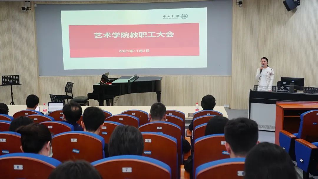 为传达贯彻落实学校2021年秋季工作会议精神,积极推进学院人才工作,助力学校事业高质量发展,2021年11月3日下午,艺术学院在南校园104栋206室召开全院教职工大会,会议由李燕副书记主持,艺术学院全体教职工参加了会议。