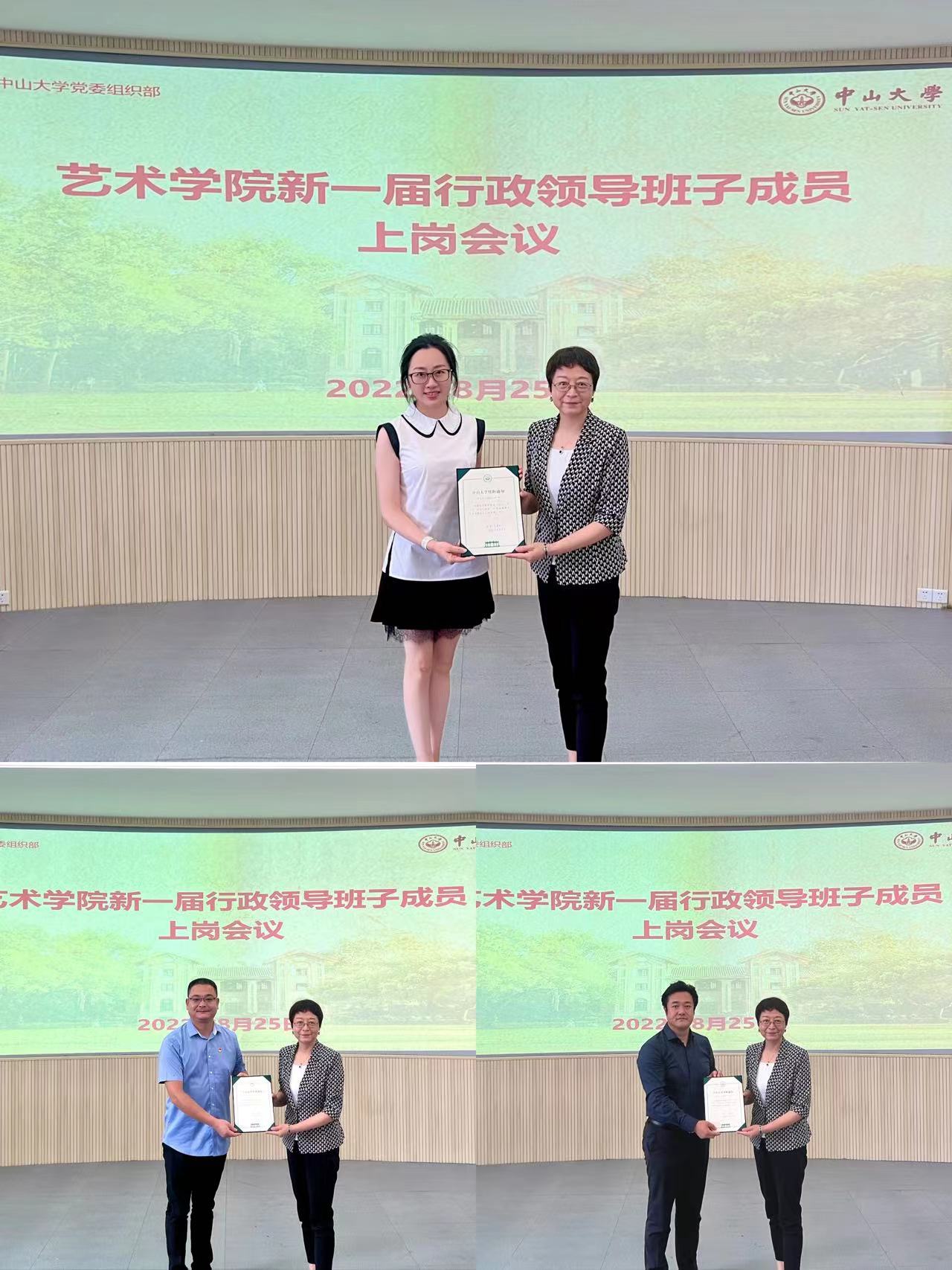 杨晓萌部长代表学校党委宣读了关于干部任免的决定。经学校党委研究决定,任命金婷婷为艺术学院院长,任命孔庆夫、张海庆为艺术学院副院长,冯芃芃继续担任艺术学院副院长。