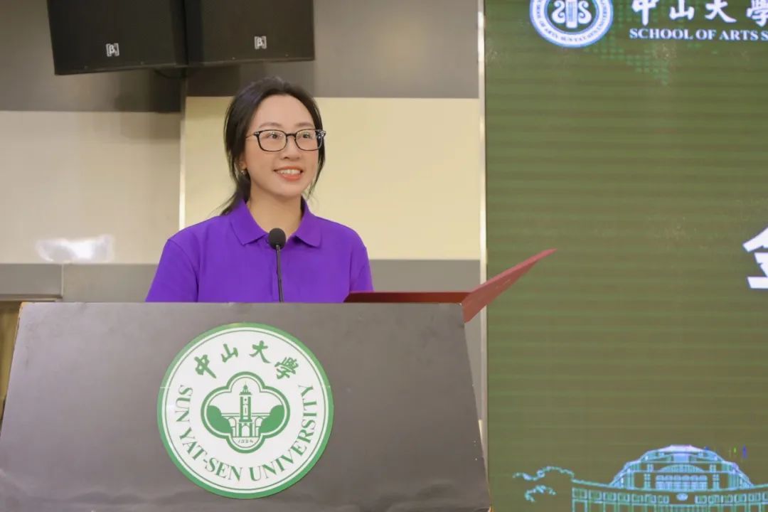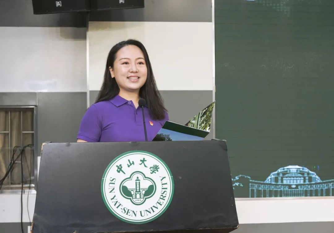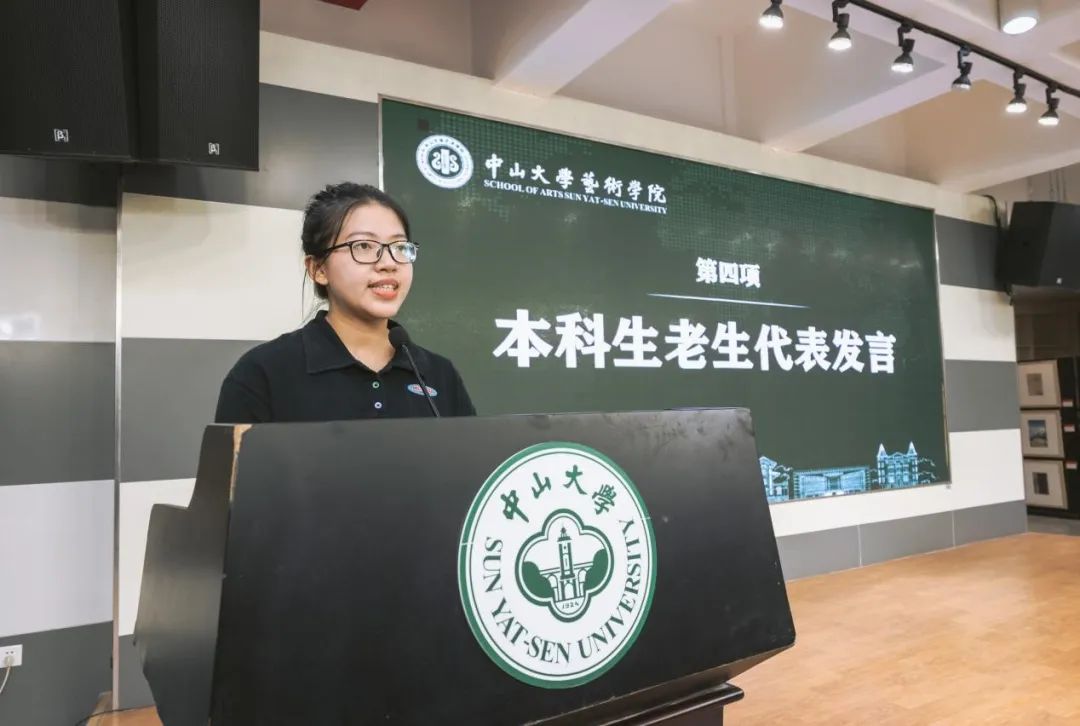本科生代表林绮雯同学分享了她在中大学习中的所思所感所获。她鼓励大家积极参加校园活动,主动传播校园文化,将奋发进取作为青春底色,与祖国共进,与时代同行。