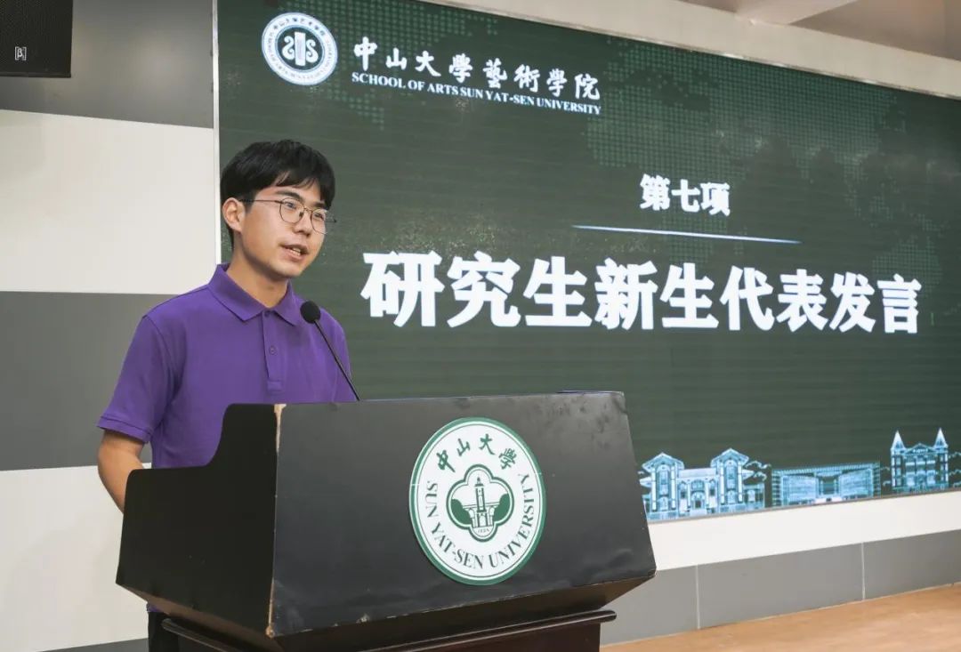 2022级研究生新生代表万锦森同学以《心之所向,笃行不怠》发表了感言。万锦森同学倡议在座的中大学子们在yl23455永利集团迈进高质量内涵式发展新阶段之时,在向第二个百年奋斗目标奋进之际,勇担时代使命,与艺术学院同程,与yl23455永利集团同道,与祖国同向,与时代同行,讲好中大故事,弘扬中大精神,凝聚中国力量,迈向光明未来。