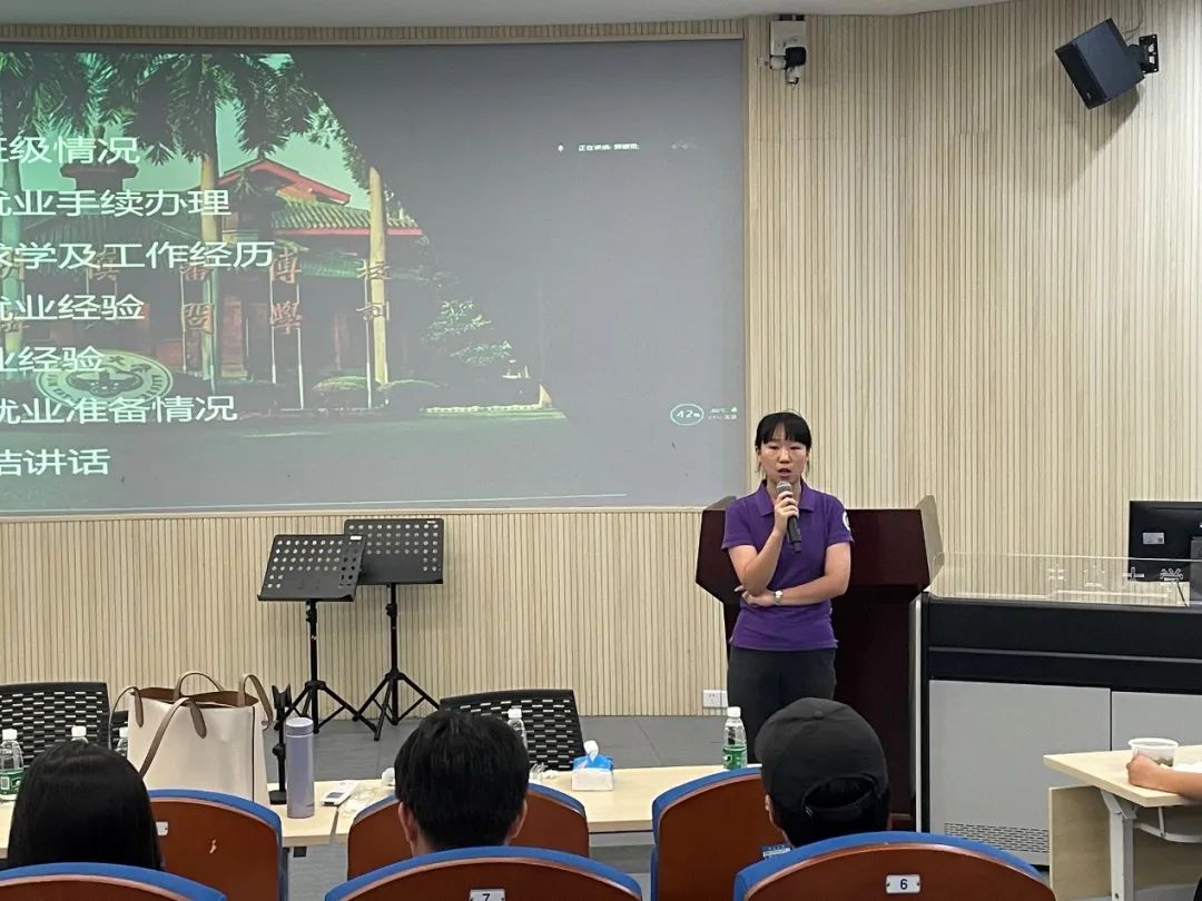 首先,胡妍璐老师简要介绍了班级情况,她建议同学们利用好应届毕业生身份,合理安排时间、积极参与各类招聘会与宣讲会。随后,庄艺敏老师强调要把握好各项就业手续办理的时间节点要求,及时、准确填报有关数据信息;同时要抓住2022年秋招的有利时机,主动出击,寻求就业机会。
