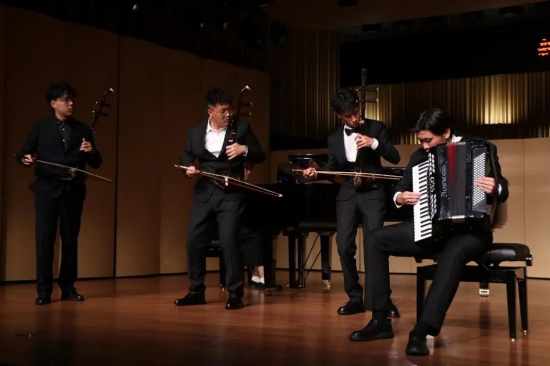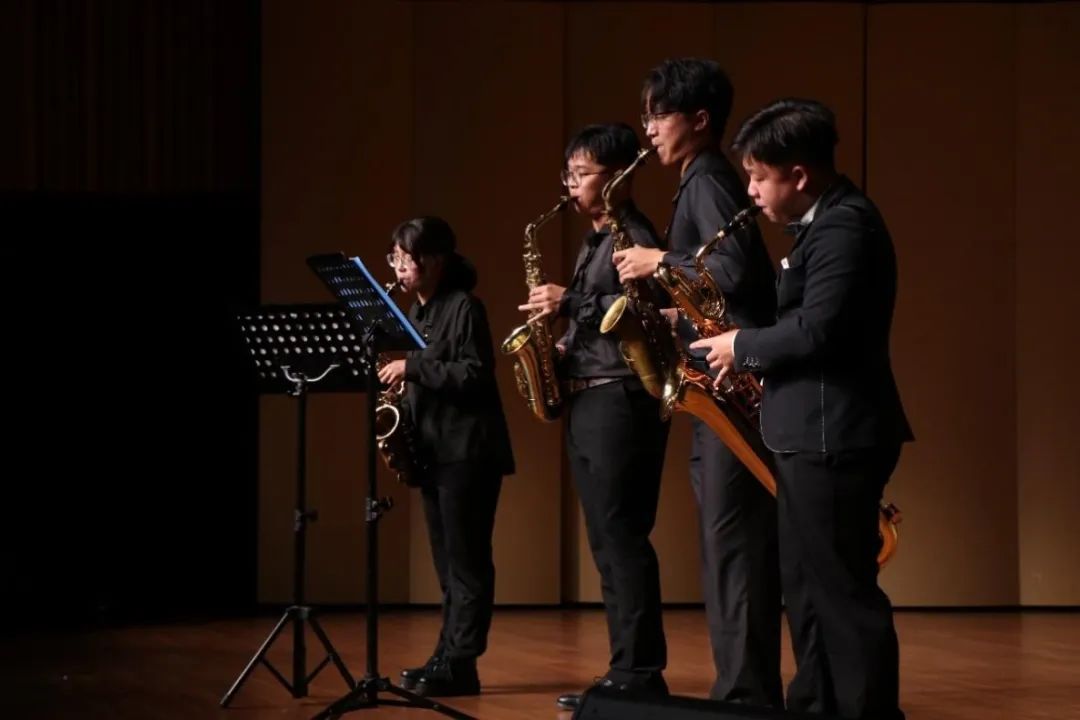 萨克斯四重奏《卡农》,低沉和高昂的萨克斯声的相互交叠,相互分离,给观众以奇妙的听觉体验。情感真挚动人,感情张力强烈。《自由探戈》在传统的古典乐旋律内注入了爵士等新的音乐元素,既保持了传统的民族性,又具有现代风格,让人耳目一新。《我的祖国》旋律悠扬婉转,似娓娓道来,轻声诉说。当现场旋律响起,勾起了每一位听众内心汹涌的爱国情怀。