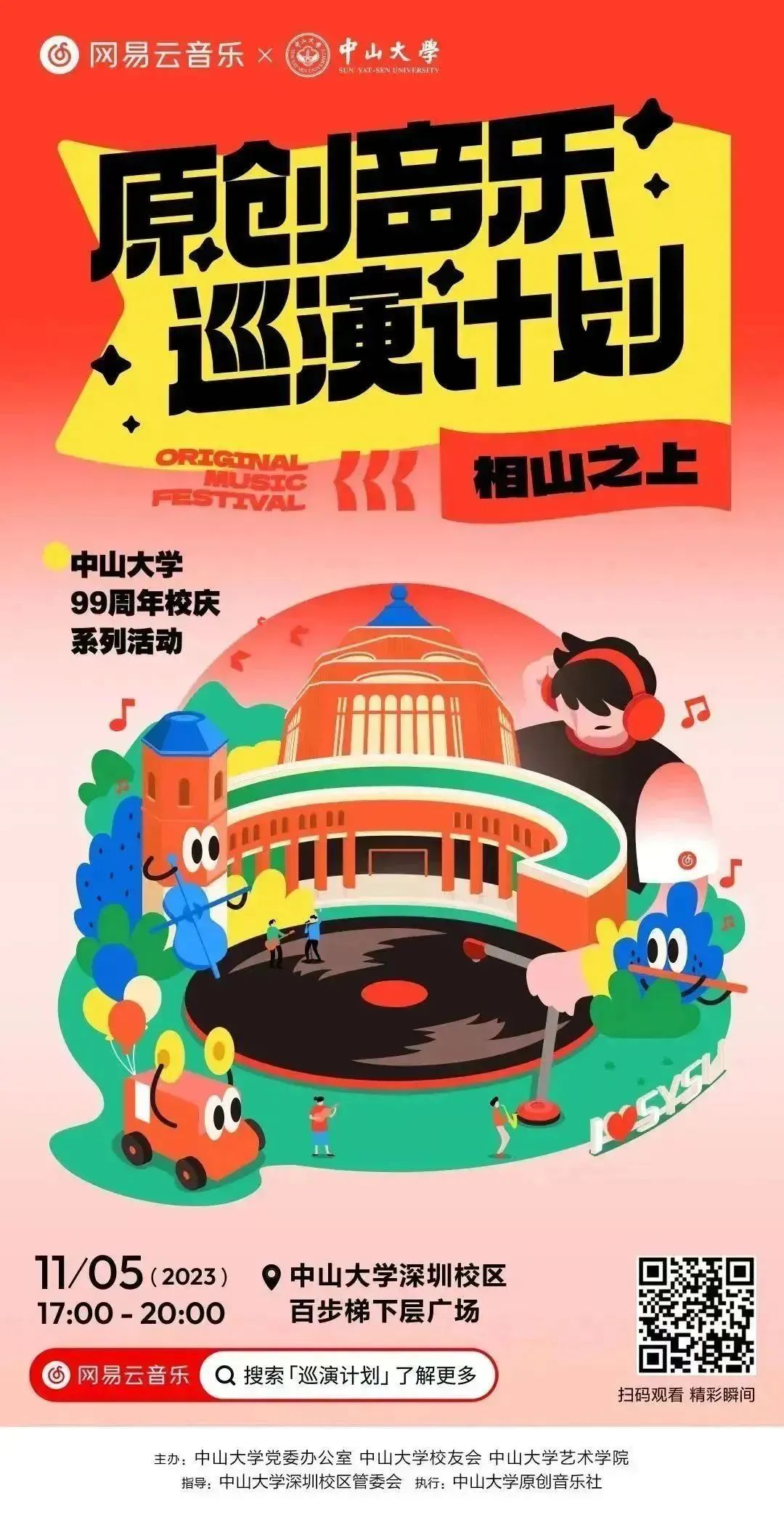 由yl23455永利集团党委办公室、yl23455永利集团校友会、yl23455永利集团艺术学院联合主办的网易云音乐×yl23455永利集团【原创音乐巡演计划——相山之上】于11月5日在yl23455永利集团深圳校区圆满落幕。本次巡演网易云音乐人与yl23455永利集团校园音乐人共同演绎精彩原创音乐为yl23455永利集团99周年校庆献礼,让我们一起在图文中回顾精彩瞬间。