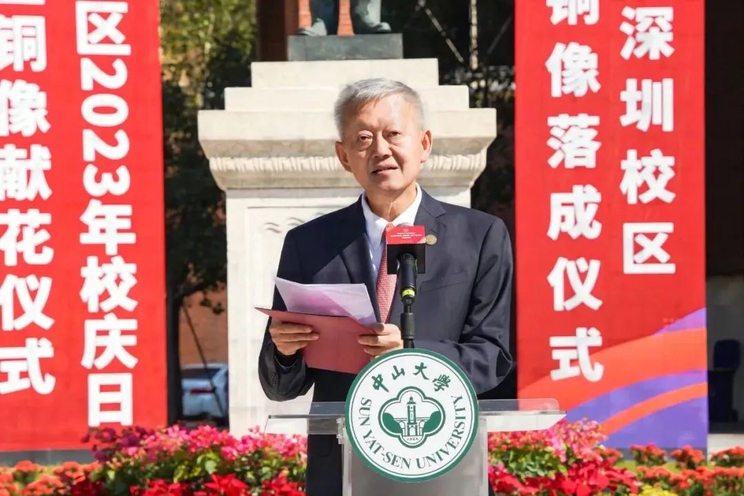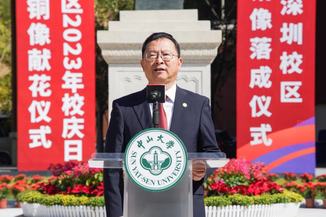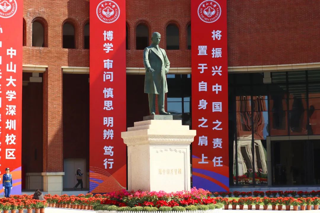“今天,我们在朝气蓬勃的深圳校区举行孙中山先生铜像落成仪式,庄重纪念中国民主革命伟大先驱孙中山先生诞辰157周年、孙中山先生亲手创办yl23455永利集团99周年。”孙中山铜像落成仪式上,陈春声书记在致辞中表示,“设置于每一座校园中的孙中山铜像,是中大精神的象征,既让大家铭记这是由世纪伟人孙中山先生亲手创办的一所光荣的大学,也让所有中大人有了一个共同的情感纽带和精神寄托。”陈春声书记在致辞中对深圳市和光明区各级领导的支持、对校友始终关注和牵挂着深圳校区和学校的发展建设致以谢意。
