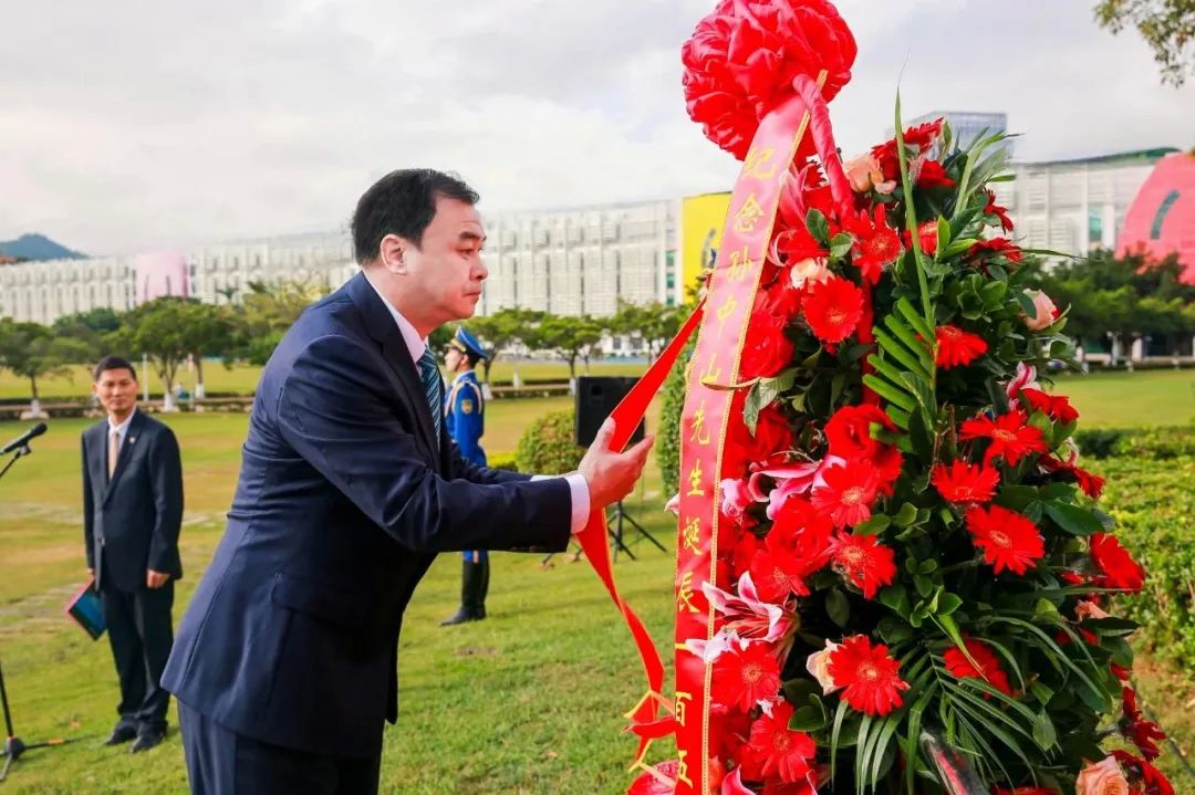刁振强副书记主礼珠海校区献花仪式(李衍衡 摄)
