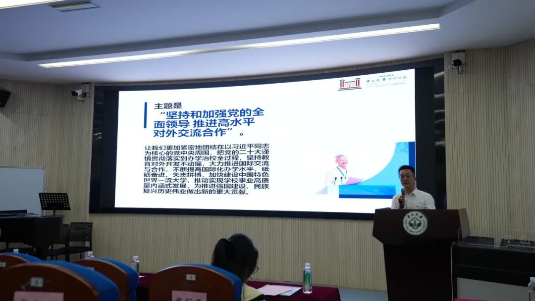 张哲书记传达了陈春声书记在2024年学校春季工作会议上的总结讲话精神。张书记指出,陈书记以“坚持和加强党的全面领导,推进高水平对外交流合作”为主题,从充分发挥党组织领导作用,把党的领导贯穿到高水平对外交流合作的全方位和全过程方面提出了三点要求:一是深入贯彻落实党的二十大精神,准确理解把握教育强国建设的战略布局和高水平对外交流合作的意义;二是坚持和加强党的领导,服务高质量发展,推动高水平对外交流合作取得新成效;三是坚持总体国家安全观,有效防范化解风险,为推动高水平对外交流合作提供坚强政治保证。张书记还介绍了新形势下学院推动国际化办学的新举措与新方向,他指出,学院将强化思想政治工作,把党的领导贯穿到高水平对外交流合作的全方位和全过程,加强涉外交流合作的管理,严把师生外事工作审核关。学院将深入推进高水平对外交流合作,推动对外交流、学生联合培养等国际化办学项目,搭建学生成长成才的平台。
