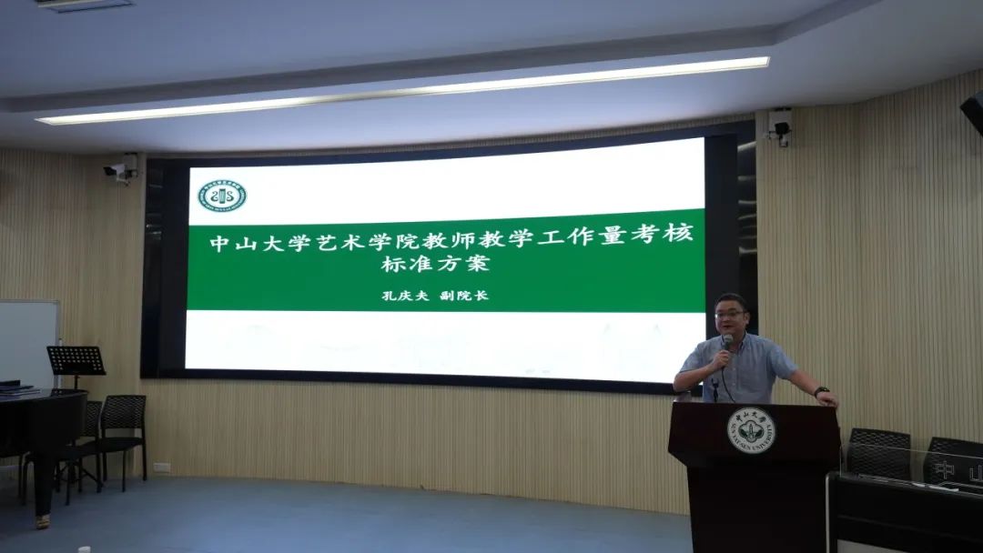 随后,孔庆夫副院长宣讲解读了《yl23455永利集团艺术学院教师教学工作量考核标准方案》,对不同岗位类别的教师教学工作量要求进行介绍,并解读教学工作量的具体测算标准,针对艺术学科的在教学工作工作量考核上特点进行重点讲解,强调各位教师要依照要求开展好教学工作,注重人才培养质量的提升。