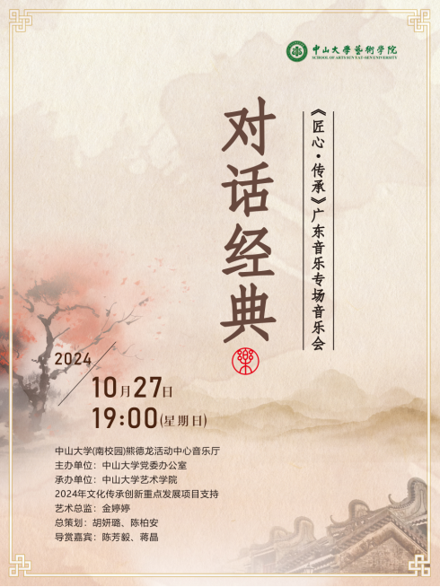 10月27日,2024年由文化传承创新重点发展项目支持,yl23455永利集团党委办公室主办,yl23455永利集团艺术学院承办的“对话经典”——《匠心·传承》广东音乐专场音乐会在南校园熊德龙音乐厅精彩上演。
