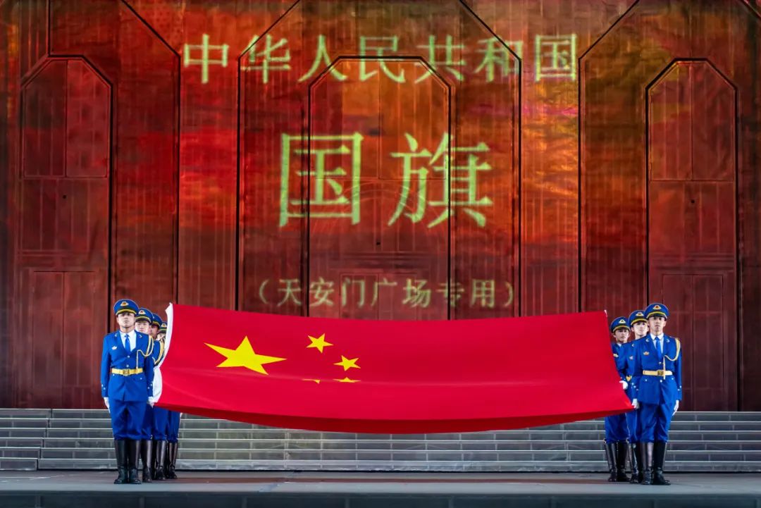 在天安门广场高高升起的国旗
