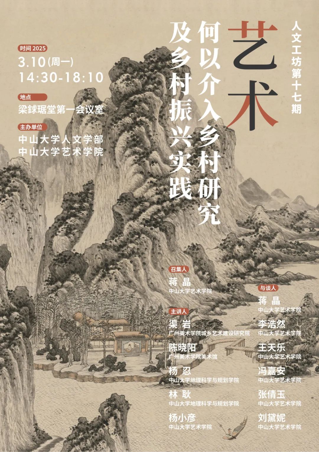 本次人文工坊邀请了在艺术乡建理论与实践领域均有建树的学界同仁,涵盖建筑学、设计学、地理学、音乐学、美术史、戏剧与影视等学科,审视传统中国艺术中的乡土性,探索当下艺术乡建的可能。